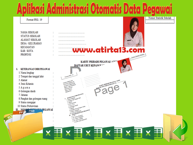 Aplikasi Administrasi Otomatis Data Pegawai, Guru dan Kepala Sekolah Format Excel - Merupakan Aplikasi dengan berbasis Format Excel yang sanggup di gunakan untuk menyusun data Pegawai, Guru dan Kepala Sekolah yang terdiri dari 19 Sheet Format Excel dan gampang untuk gunakan hanya isi data utama saja secara otomatis data akan tersusun dengan rapi pada tiap sheetnya sesuai dengan data yang di input pada kolom Data Utama Aplikasi Administrasi Otomatis Data Pegawai, Guru dan Kepala Sekolah Format Excel.
